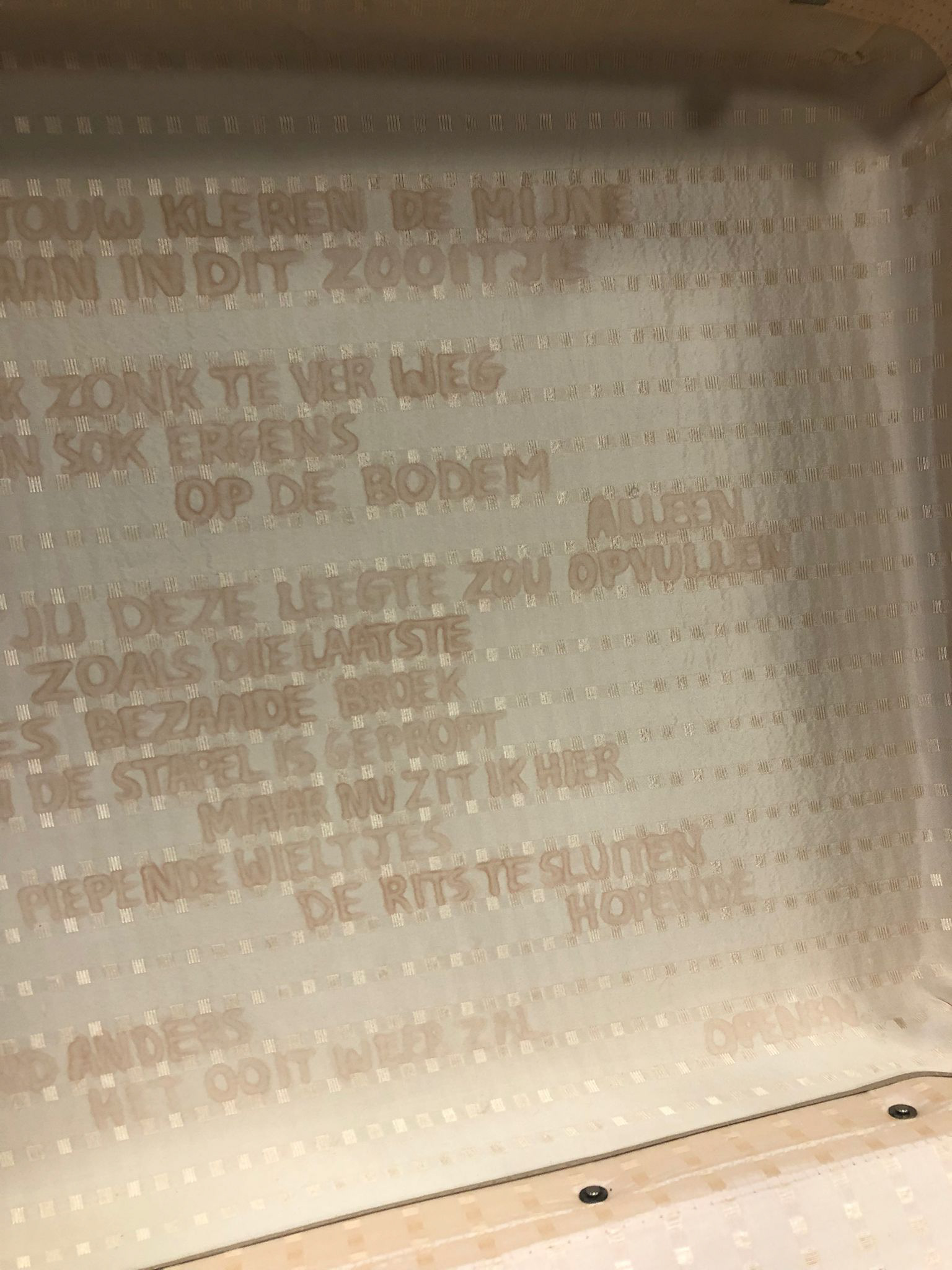 This is a project I made during my first education: a bachelor’s degree in secondary education with the subject art education. I started this project with the idea of how loneliness can translate into places. With a more poetic approach, I re-imagined scenes that I actually came across during my travels in Italy, which evoked these feelings for me. The recreated scenes were presented in video work and photography. Alongside these images I created an installation with clay and a suitcase, in which I wrote a poem (in Dutch) related to loneliness. The claywork is a bag of fries, but it is made very organically like it was discarded and only visible for those who look intentively. The poem is written with an ink that's only a shade darker than the inside of the suitcase, symbolising how often things go unnoticed. These are all traces humans leave in nature, that are often not looked at.